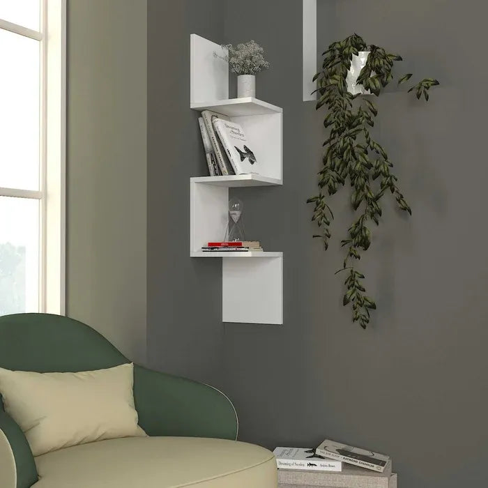 Transformez un simple coin vide en un espace chic et fonctionnel grâce à cette étagère murale d’angle en MDF blanc. Avec son design géométrique en zigzag, elle attire les regards tout en optimisant chaque centimètre carré de votre mur.